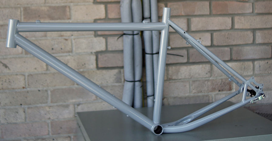 Where were we...Seat collar reinforced, brake mount, brace and cable stop brazed on, and cantilever bosses removed by Winston Vaz, Ursula was sent to the powder coater...Mario Vaz is an enameller with decades of experience (supervisor for the Holdsworthy group’s paint shop until the Falcon group moved to Humberside in the late 1980s). However, my preference is for powder coating where possible, especially on bikes in hard service.